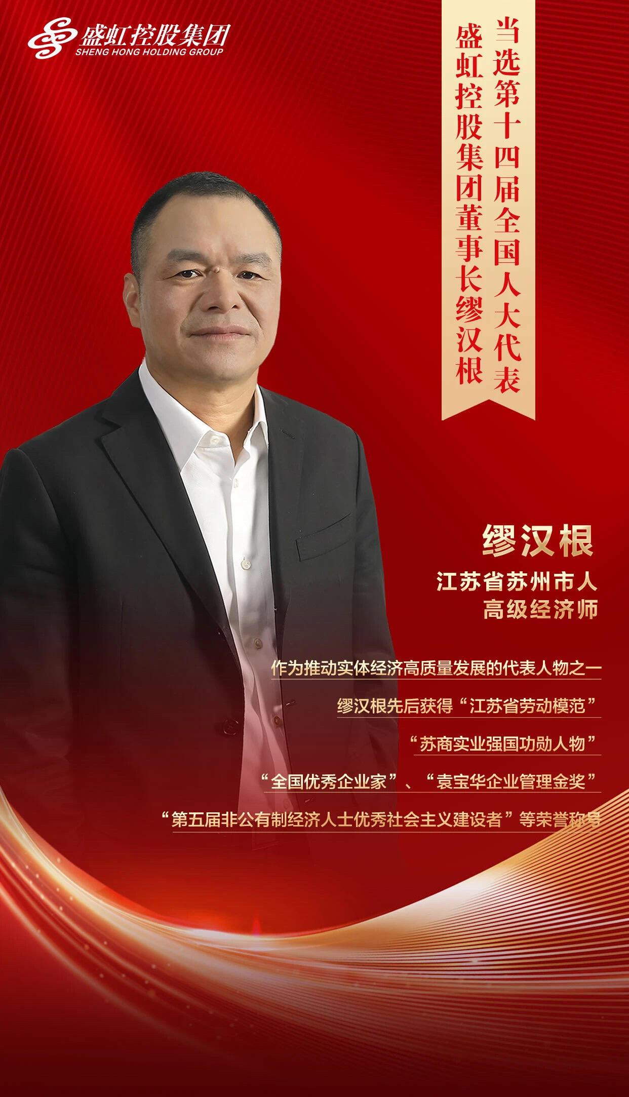 江苏省第十四届人民代表大会第一次会议于2023年1月19日,选举产生江苏省出席第十四届全国人民代表大会代表共144名。永信贵宾会控股集团党委书记、董事长缪汉根光荣当选第十四届全国人大代表。